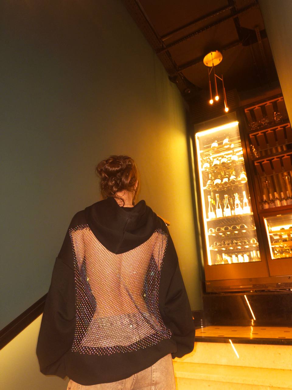 1k+ rhinestones catch the light and every eye. Black or white — you choose how hard you want guys staring.